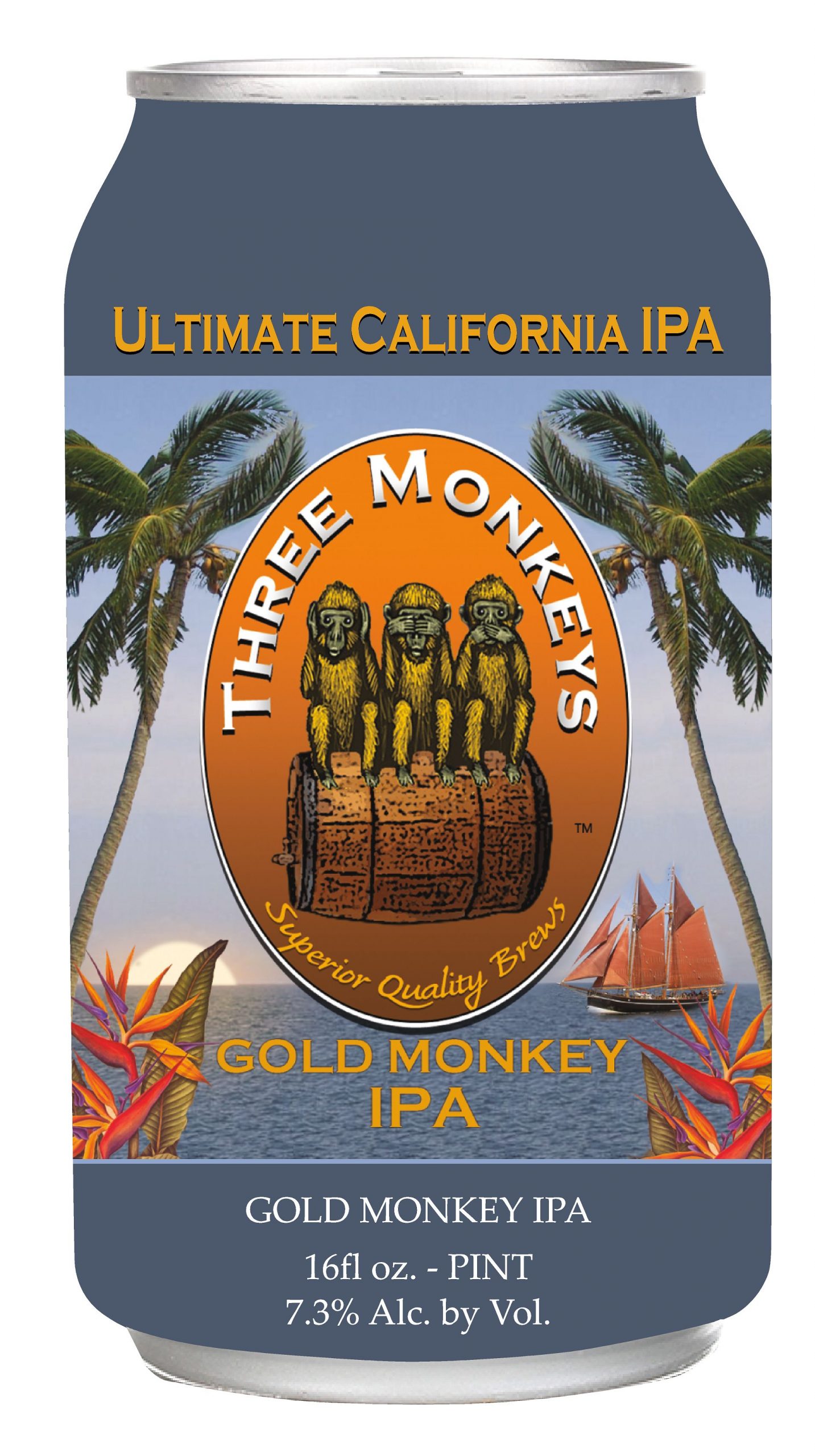 This handcrafted IPA is our flagship brand, a return to the Colonial Period – The first style brewed in the United States, adopted as the California IPA. We brew using a blend of 2-row and specialty malts creating a incredible IPA hopped to perfection, making this a smooth tasting California IPA, well balanced & drinkable. Three Monkeys Gold Monkey IPA will knock your socks off!