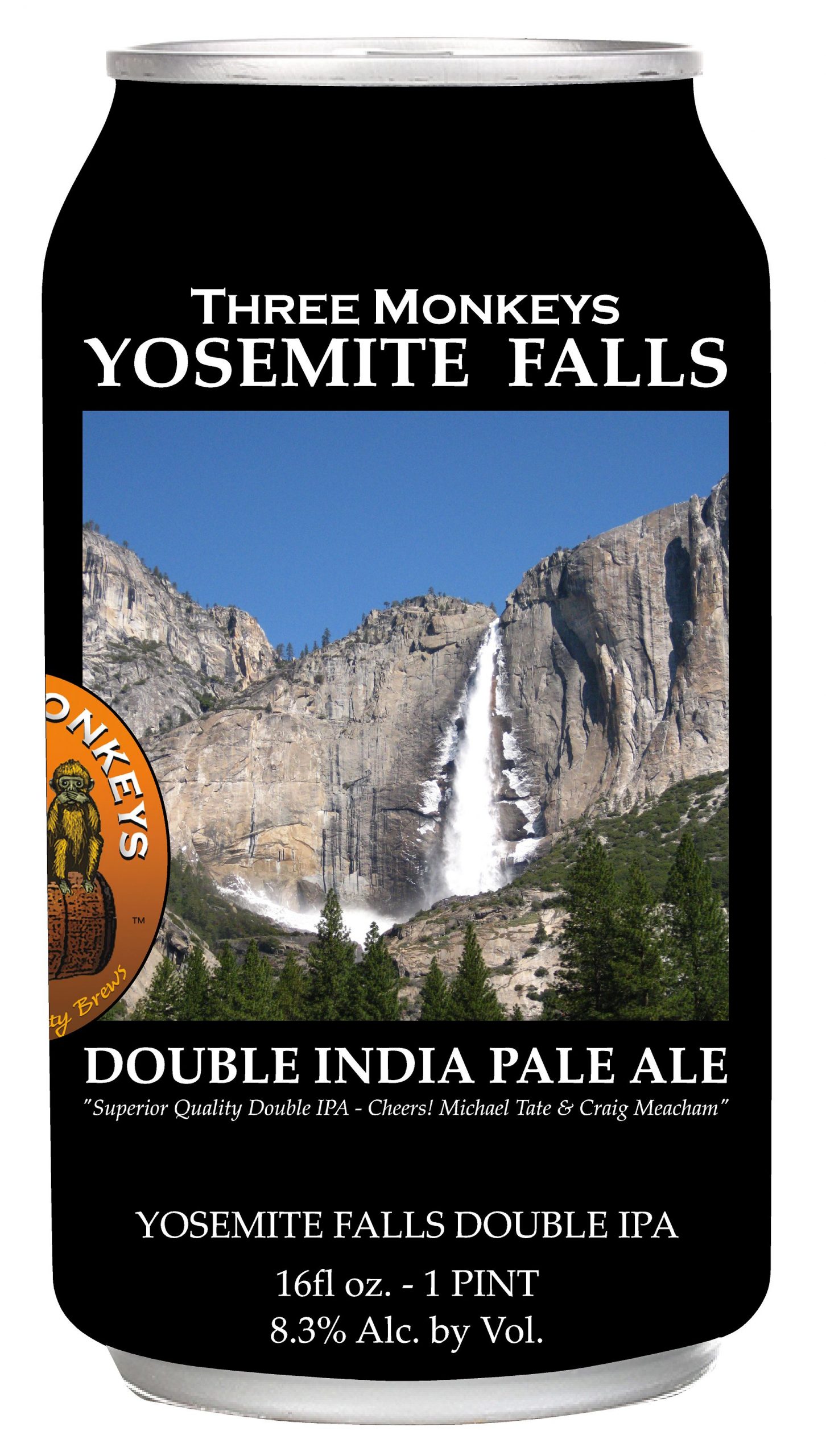 This handcrafted Double India Pale Ale “DIPA” is our specialty brand brewed for the Yosemite California area. A true American IPA-Classic, brewed using the best Specialty Malts hopped to perfection with a nice citrus dry hop finish & a Touch of chocolate. making this DIPA, well balanced, & drinkable. Three Monkeys Yosemite Falls Double IPA captures the essence of this great yosemite waterfalls.